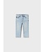 ECOFRIENDS garment, contains sustainable cotton. Slim fit trousers for boy which fit well to the figure. Zip and button to fasten. Adjustable elasticated waistband to fit the waistline perfectly. Comfortable denim fabric, perfect for everyday outfits.